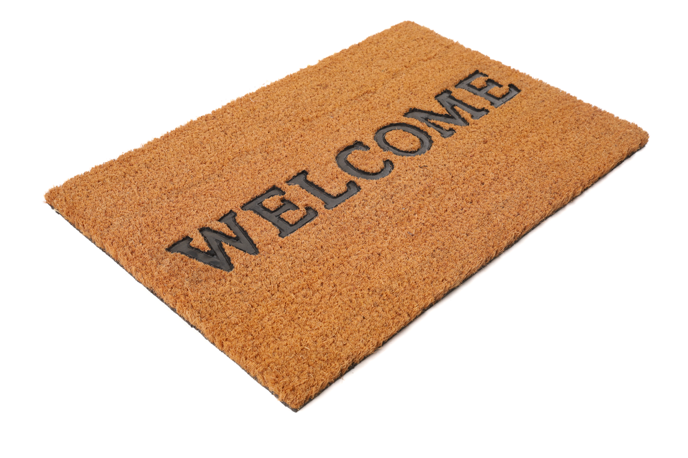 Personalisierte Fußabtreter aus Kokofasern und Gummi; zum visuellen Welcome in Schwarz, funktionell und dekorativ